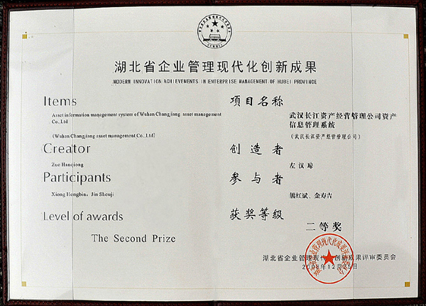 • 2008年度长江资产公司获湖北省企业管理创新二等奖