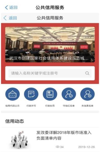 目前,武汉“公共信用服务”已直接接入“信用武汉”网站信息系统,用户只需打开支付宝,在城市服务“政务”专栏中“在线服务”分类下找到该应用,无需再额外下载、注册、登录,即可一键查询企业的基本信息、行政许可、行政处罚、信用承诺、知识产权、红名单、黑名单、司法信息、风险提示等社会公共信用信息,阅览信用动态。