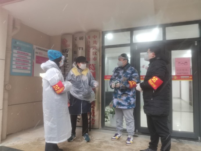 长江金融副总经理吴琼积极响应集团党委号召,主动请缨,迅速集结长江金融10名抗疫突击队员下沉到疫情严重的硚口区长丰街公路社区、空后社区,担任防疫志愿者。