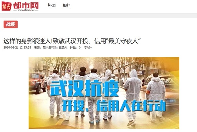 楚天都市报:这样的身影很迷人!致敬武汉开投、信用“最美守夜人”