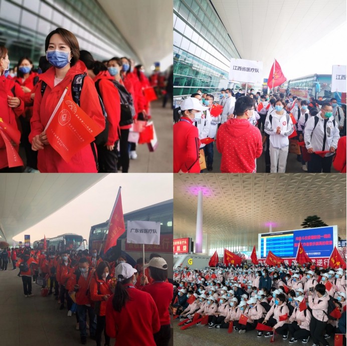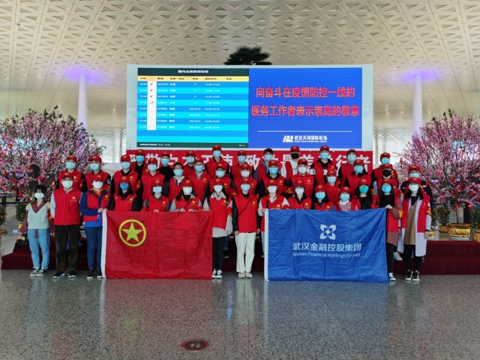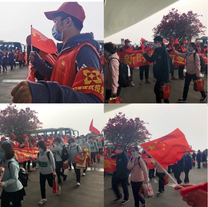 3月23日,根据团市委的统一部署,集团团委组织集团系统40名青年员工前往天河机场,为山西、广东、江西、重庆四省市援鄂医疗队送行。