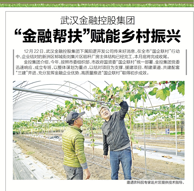 12月22日,武汉金融控股集团下属阳逻开发公司传来好消息,在全市“国企联村”行动中,企业结对的新洲区邾城街刘集片区秸秆厂房主体结构已经完工,本月底将完成收尾。