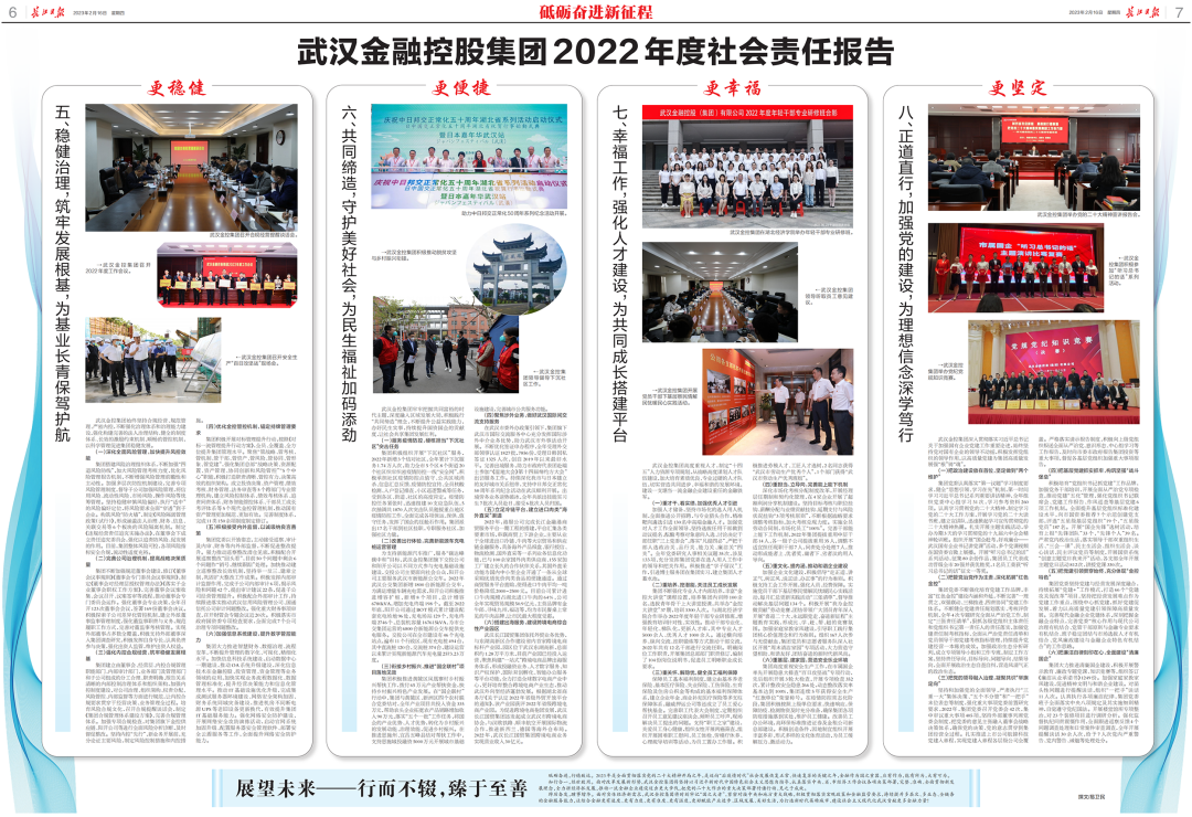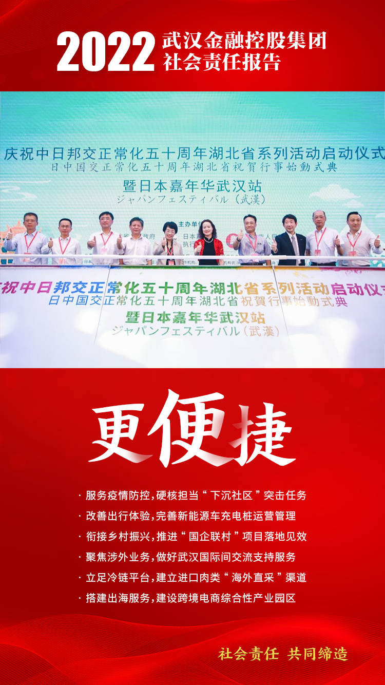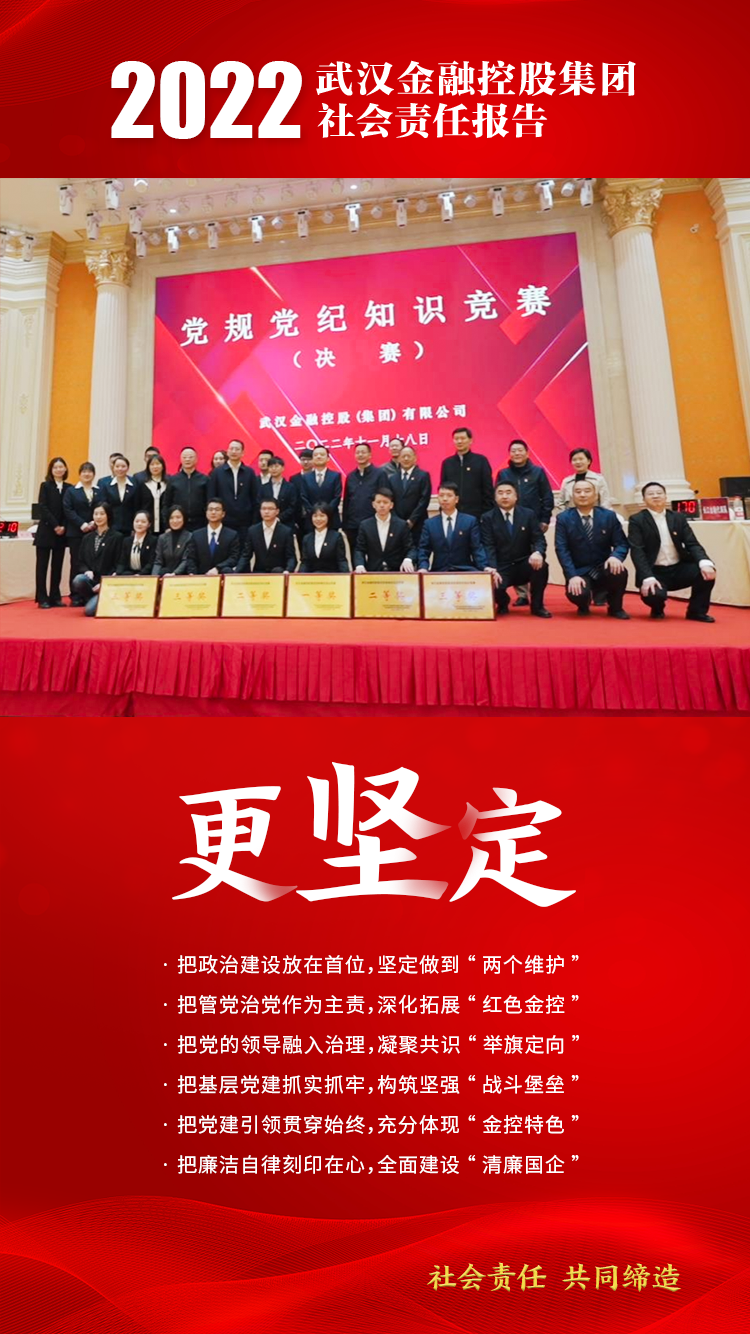 2022年是党的二十大召开之年,是国企改革三年行动收官之年,黑料网 坚持以习近平新时代中国特色社会主义思想为指引,坚决贯彻落实中央和地方重大决策部署,坚守金融服务实体经济根本属性,充分发挥综合金融业态优势,保持高质量发展同时,在国有资产增值、服务区域经济、支持重大项目、主动纾困让利、关爱员工成长、践行公益慈善等多方面取得良好的履责绩效,全年为实体经济提供综合金融支持超1300亿元,实现政治责任、社会责任、经济责任的有机统一,集团荣获“年度武汉履行社会责任优秀企业”。