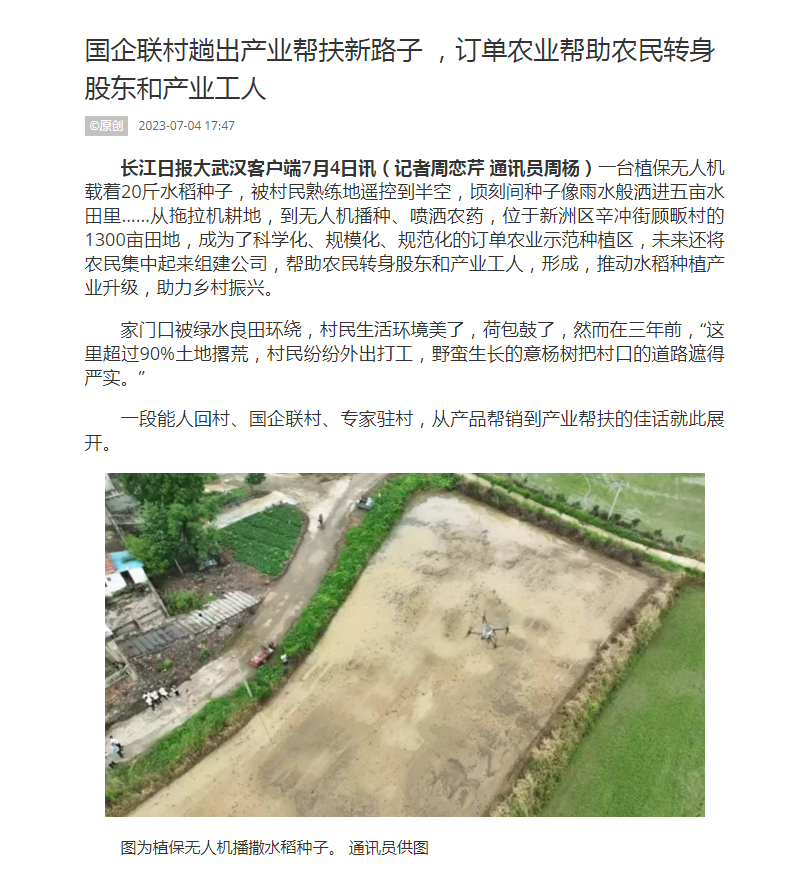 长江日报:国企联村趟出产业帮扶新路子 订单农业帮助农民转身股东和产业工人